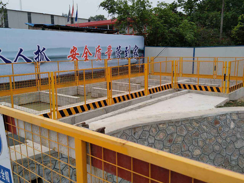 開挖深度超過2m的基坑周邊必須安裝防護(hù)欄桿?;优R邊防護(hù)網(wǎng)種類很多,一般使用黑黃色和紅白色較多,根據(jù)使用需要可在防護(hù)欄噴涂:禁止攀爬、注意安全、請勿靠近、嚴(yán)禁拋物,禁止跨越等字樣,警示施工人員注意安全施工。